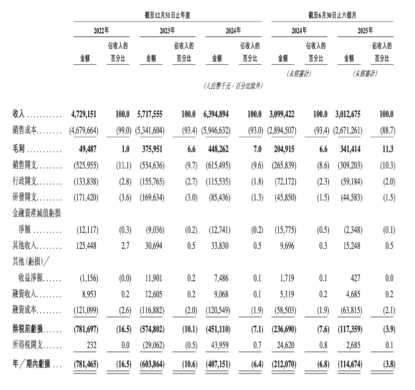 值得一提的是,该公司毛利率呈上升趋势,2022年至2024年分别为1%、6.6%、7%。2025年上半年,享道出行的毛利率达到11.3%。招股书显示,这主要得益于网约车服务毛利率的提升及车辆租赁服务效率的改善。