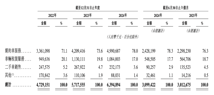 贡献营收的另一主要业务为车辆租赁服务,该业务主要面向企业客户。招股书显示,该业务2024年收入为10.84亿元。按GTV计,享道出行在中国企业出行服务行业排名第二,在长三角地区排名首位。