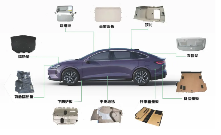 使用竹纤维后,每车平均减重 20% 以上,进而降低能耗;甲醛释放量趋近于 0,每替代 1 吨塑料可减碳 2.6 万克,360 天自然降解率超 90%。