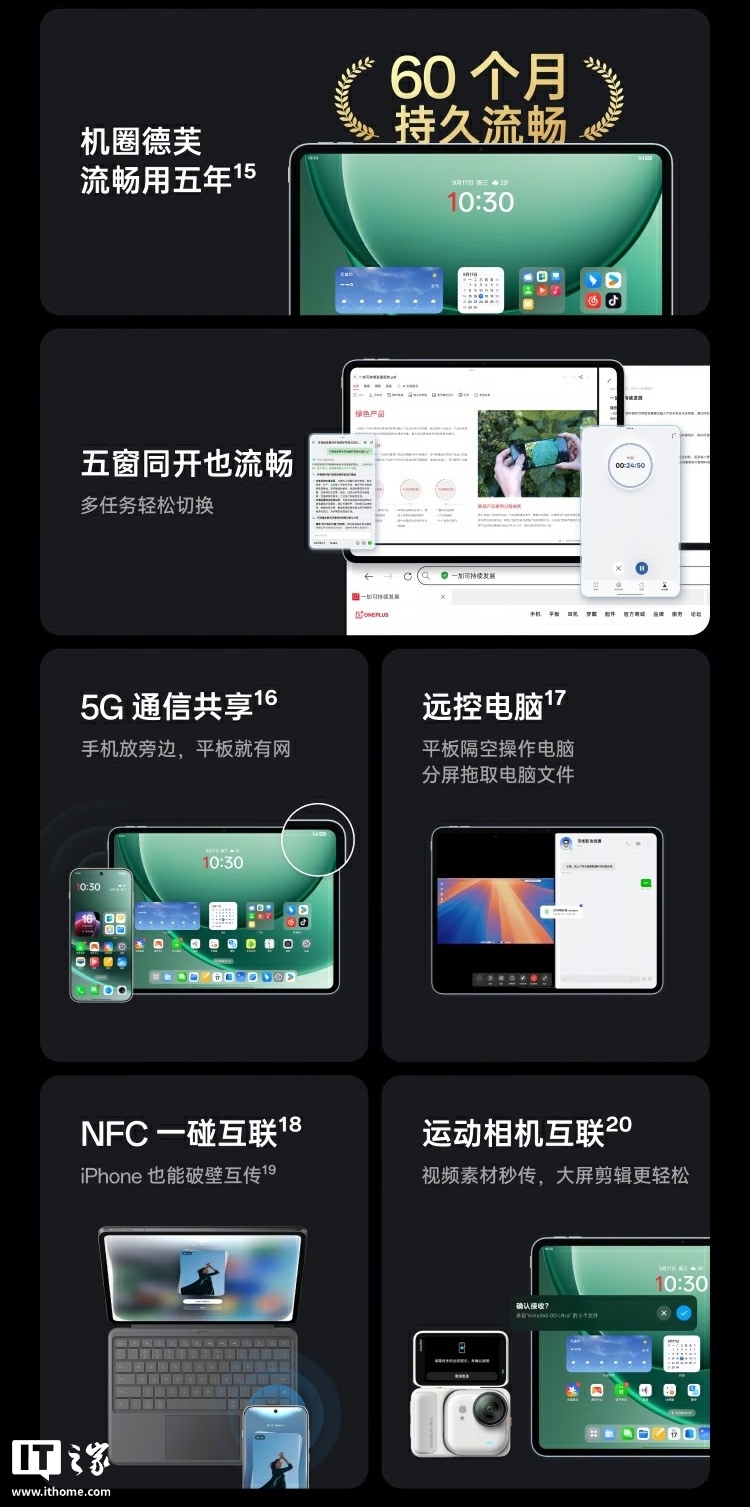 系统方面,这款平板预装最新的 ColorOS 16 系统,拥有全新的“游戏相机”功能,可捕获超清 Live Photo 屏幕截图,还支持回录至高 30 秒的游戏画面。该系统还提供 5G 通信共享、远控电脑、运动相机互联、NFC 一碰传(一碰传需配套键盘)等功能。