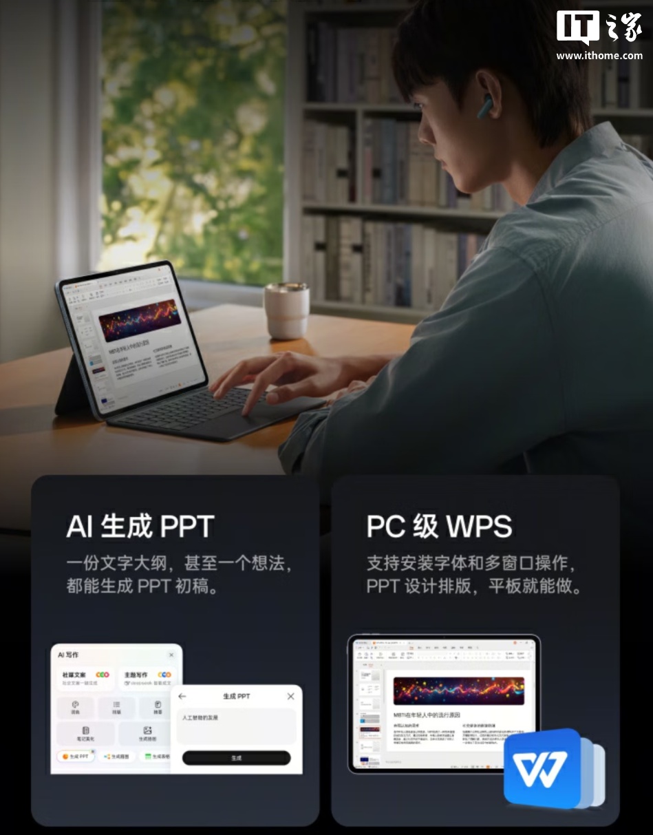 办公学习方面,这款平板支持字迹实时美化功能,可让原本不那么好看的字迹变得更加顺眼,支持“超级智能提取”功能,一键提取要点。系统本身还支持 PC 级 WPS 办公软件、全景虚拟屏功能,后者可实现平板一个屏幕开启三个应用,加上双应用浮窗等于可在屏幕上同时开启五个应用。