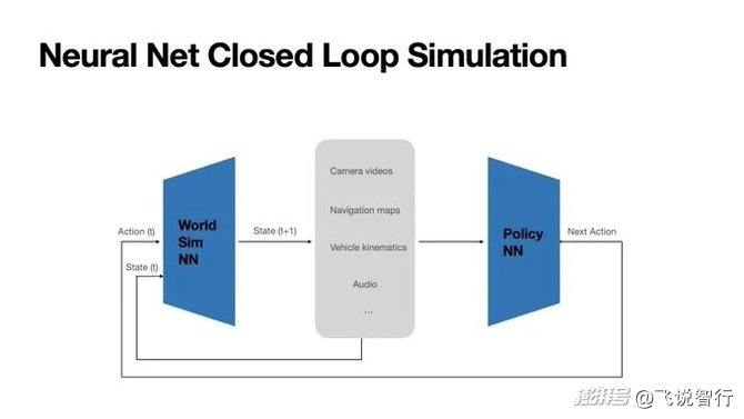 与此同时,基于庞大的真实数据基础,特斯拉还建立了名为“神经世界模拟器”的闭环仿真系统。通过这套系统,不仅可以训练算法,并且还能验证算法的正确性,好比同时是“训练场”和“考试场地”。