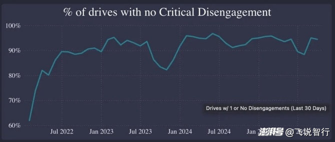 在安德烈看来,自动驾驶的迭代好比是无限接近100%的过程,在此之前就是无数个9的积累过程,按照他对Electrek回忆道,他曾领导特斯拉自动驾驶经历了两到三个“9”的迭代,确实显著减少了驾驶员接管的干预,但此后这样的进步就不明显了。