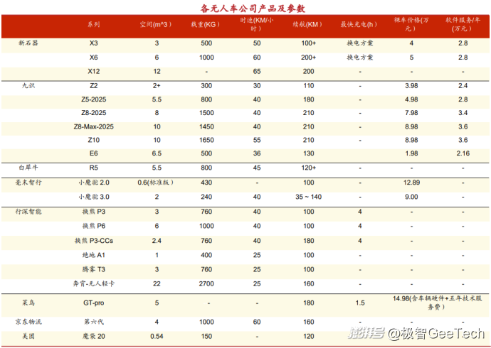 数据显示,截至今年8月底,新石器无人车已部署超过8000台,预计全年将达成1.5万台交付目标;九识智能交付超7000台,同样在年底剑指1万台的交付量;白犀牛预计到2026年,活跃车辆将达到5000台。