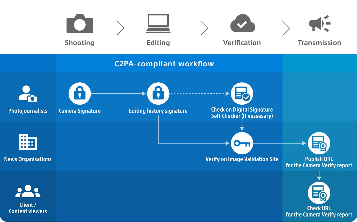 该方案采用了 C2PA(内容出处与真实性联盟)的开放标准,索尼作为该联盟的指导委员会成员,已将此标准直接整合到其视频工作流中。