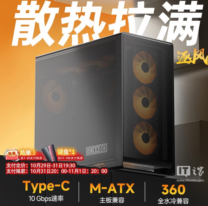 alixixi 10 月 31 日消息,金河田现已在京东上架逐风机箱,目前处于预售状态,标准价 399 元,首发支付订金后到手价为 299 元。