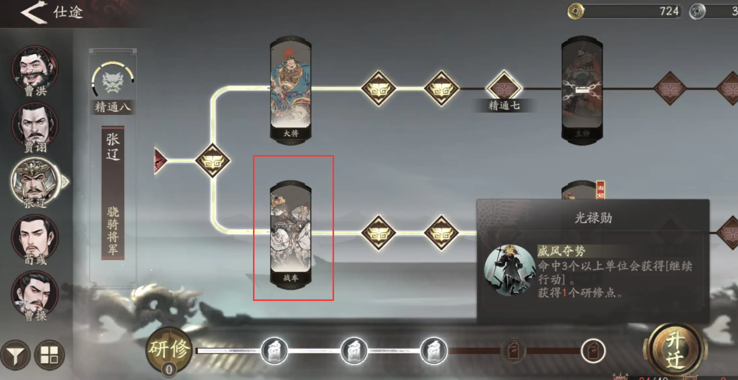 如若是高机动性的武将单位,例如曹仁,在转职之后仍然需要保持它的机动能力,方向可以直接选择骑兵路线,同时搭配其技能天人之勇,以及意气奋怒,可以实现高爆发的能力,使得追击时,甚至能够迅速的秒杀敌人。