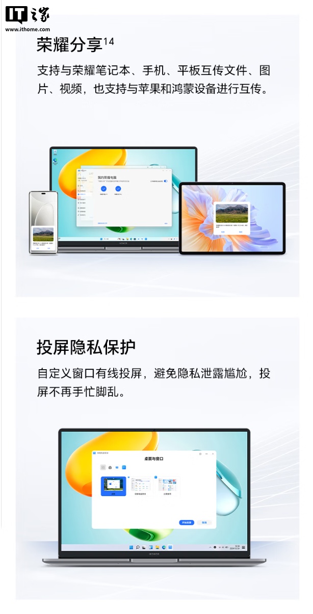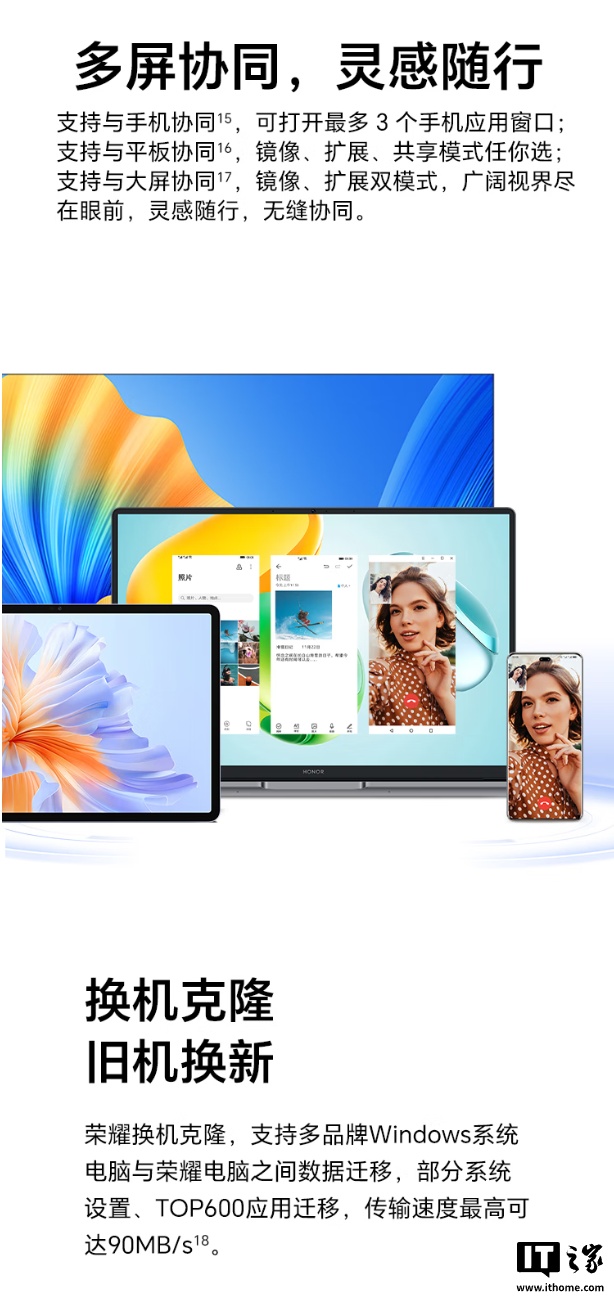 此外,这款笔记本还搭载荣耀超级工作台,可与自家手机共享通话、通知、键鼠、摄像头等。