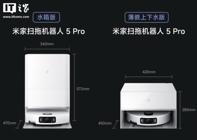小米米家扫地机器人 5 Pro 开售于 8 月 9 日,薄嵌上下水版发售价为 4549 元。