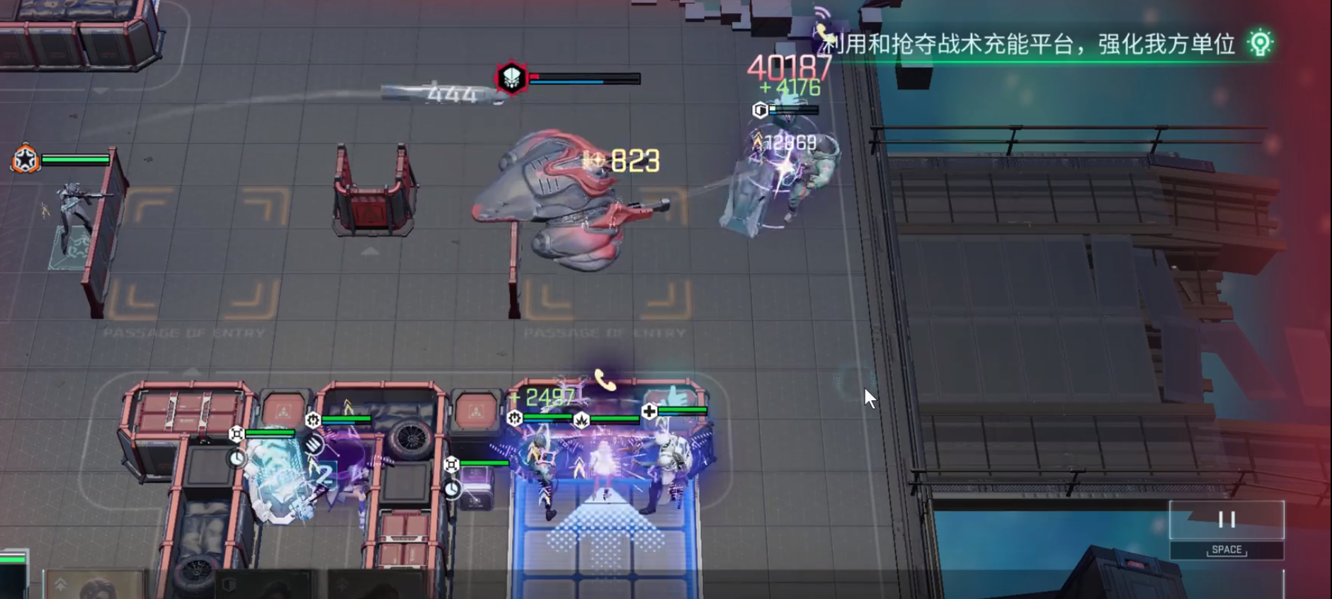 最后是90秒之后的爆发输出阶段,当boss的护盾破裂触发“弱点击破”的时候,这个时候boss会眩晕五秒,承伤提升50%,就可以全员集火boss了。当boss护盾再生之后就可以重复部署“重盾嘲讽和侧击累积”的循环,还可以加入塞谬尔激活右侧的EMP陷阱,会产生额外的20%护盾伤害值。