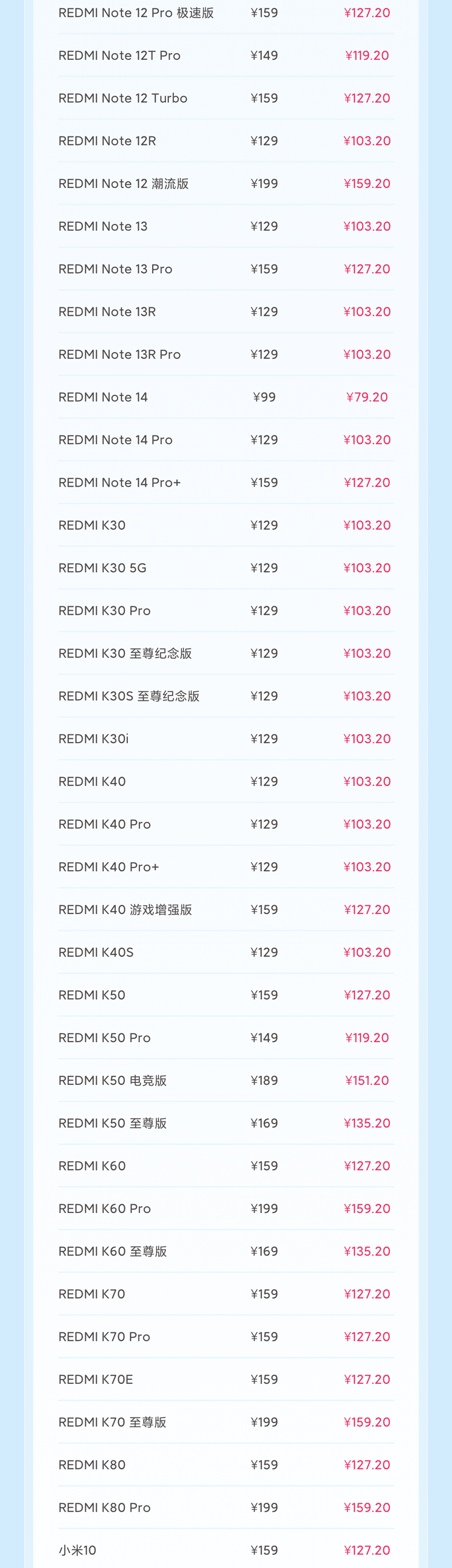 REDMI K80:厂商建议零售价 159 元,活动价 127.20 元