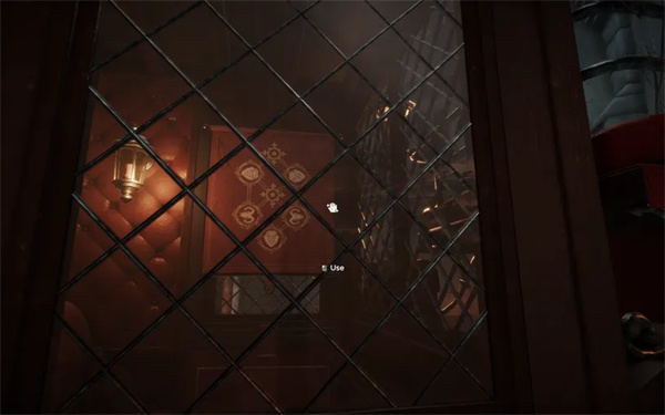 面向马车右侧的窗户,擦掉冷凝水,可以看到对面窗帘上的图案。