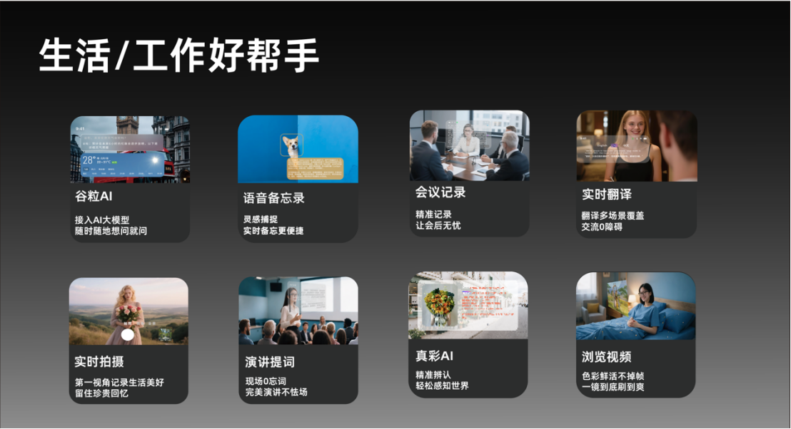 在生活场景,它以实时拍摄定格美好瞬间,用真彩 AI 解锁认知世界的新方式,更以流畅不掉帧的视频浏览体验和多场景实时翻译功能,让用户在记录、感知、娱乐、交流中尽享智能便捷。