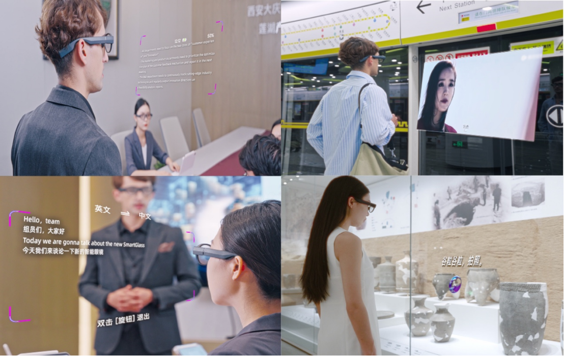 AR 设备的体验瓶颈始终集中在光学性能与佩戴舒适度的平衡上:视场角不足则沉浸感缺失,过度追求大视场角又易引发颗粒感;透光率低下会造成室外遮挡感,而高亮度补偿又加剧功耗与发热。而谷东智能通过优化光学架构与工艺,将波导片透光率提升至 90% 以上,既避免了低透光率带来的视觉阻隔,又无需依赖高亮度光机补偿,从源头化解了功耗与显示效果的冲突。在佩戴体验上,轻量化的应用与结构优化,让设备在保持轻薄形态的同时突破效率瓶颈,这些技术的落地,不仅在户外或室内场景下画面依然清晰可见,同时也为长时间佩戴提供了物理基础。
