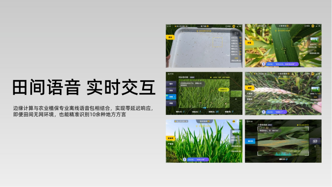 在田间交互上,通过边缘计算与农业植保专业离线语音包结合,实现零延迟响应,即便田间无网络,也能精准识别 10 余种地方方言,让农户在田间可便捷地进行语音交互,获取相关农业信息或下达指令。