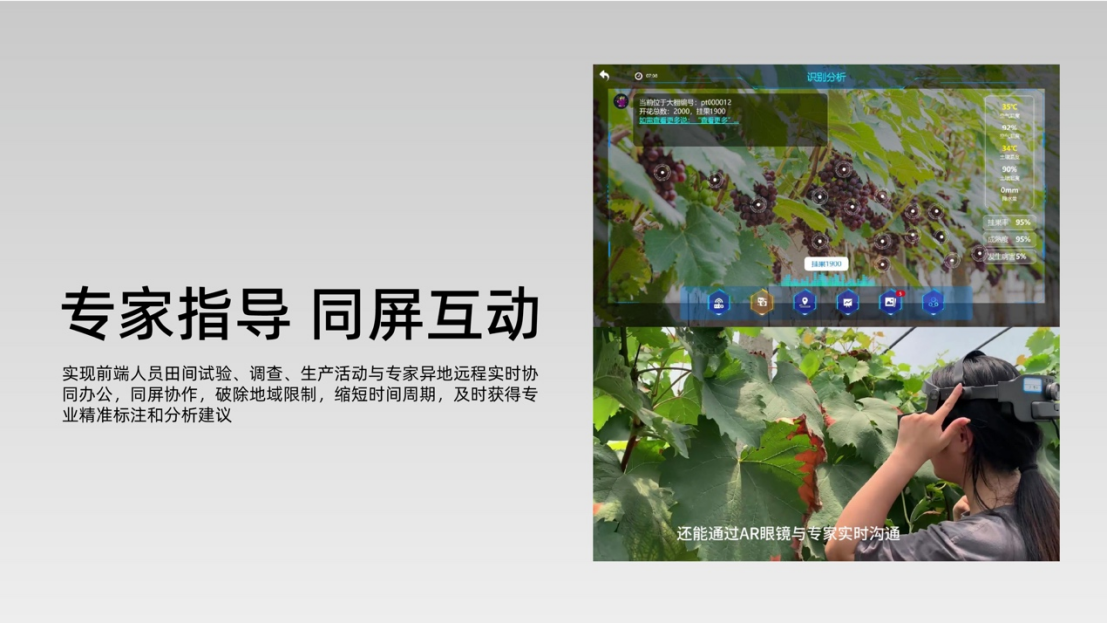 此外,在专家指导环节,C3000E实现了前端人员田间试验、调查、生产活动与专家异地远程实时协同办公、同屏协作,破除地域限制,缩短时间周期,使前端人员能及时获得专家的专业精标准注和分析建议,借助 AR 眼镜等设备,还可与专家实时沟通,让农户在田间就能获得专业的技术支持,助力农业生产更加科学高效。