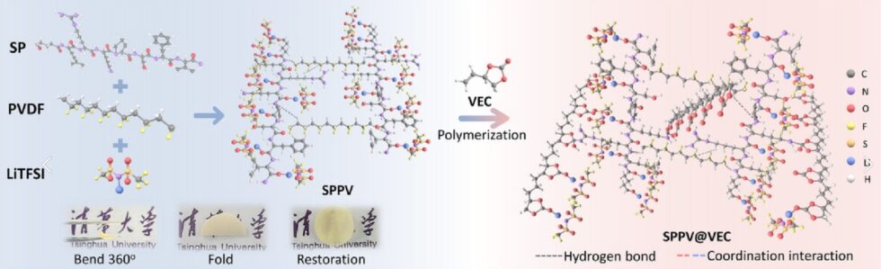 为了使大豆蛋白适用于电池,申洋团队对其进行了化学修饰,提高了其本征导电性,促进锂离子更顺畅地迁移。最终获得的材料形成了由硬层与软层交替构成的三维网络结构,兼具高强度与柔韧性,使电解质既坚固又富有弹性。