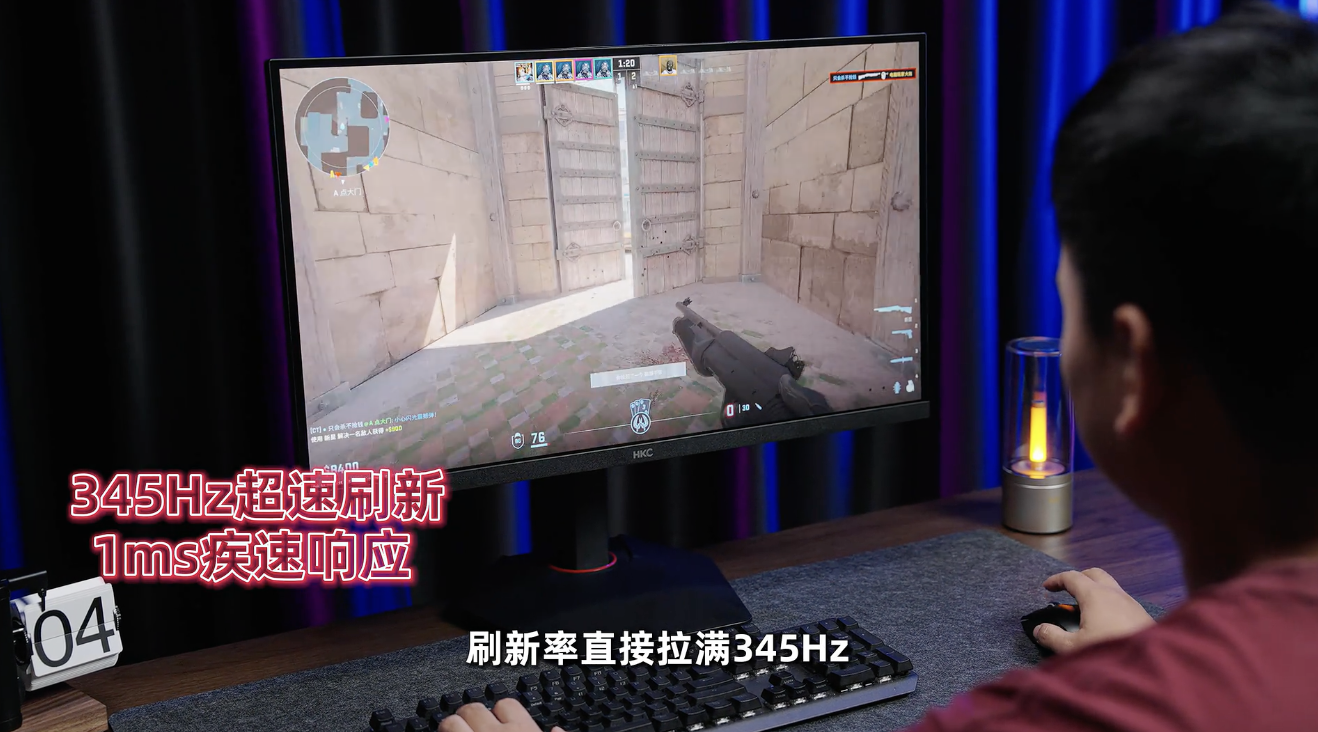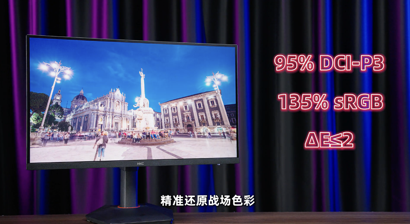 该机配备一块 2560x1440 分辨率 345Hz 超频(alixixi注:原生 320Hz,商品页声称为“350Hz”,但实为 345Hz)的 Fast IPS 面板,显示器亮度 350 尼特,GtG 响应速度 1ms,静态对比度 1300:1,覆盖 95% DCI-P3 和 135% sRGB 色域。