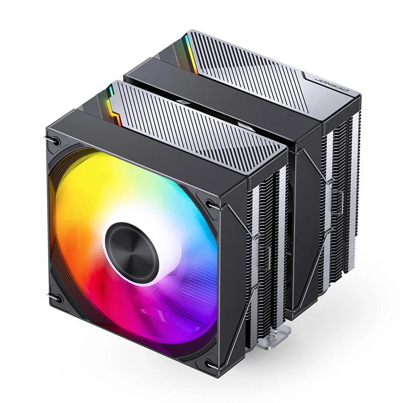双塔双风扇镀镍 6 热管铜底,双 120mm 风扇(其一支持 ARGB),全高 153mm,标准模式兼容 37.4mm 高内存条,标称 D-TDP 功耗 260W。ARGB 千层幻境灯条 + 圆孔矩阵 + 金属质感铭牌,可选黑色 / 白色,目前暂未上架。