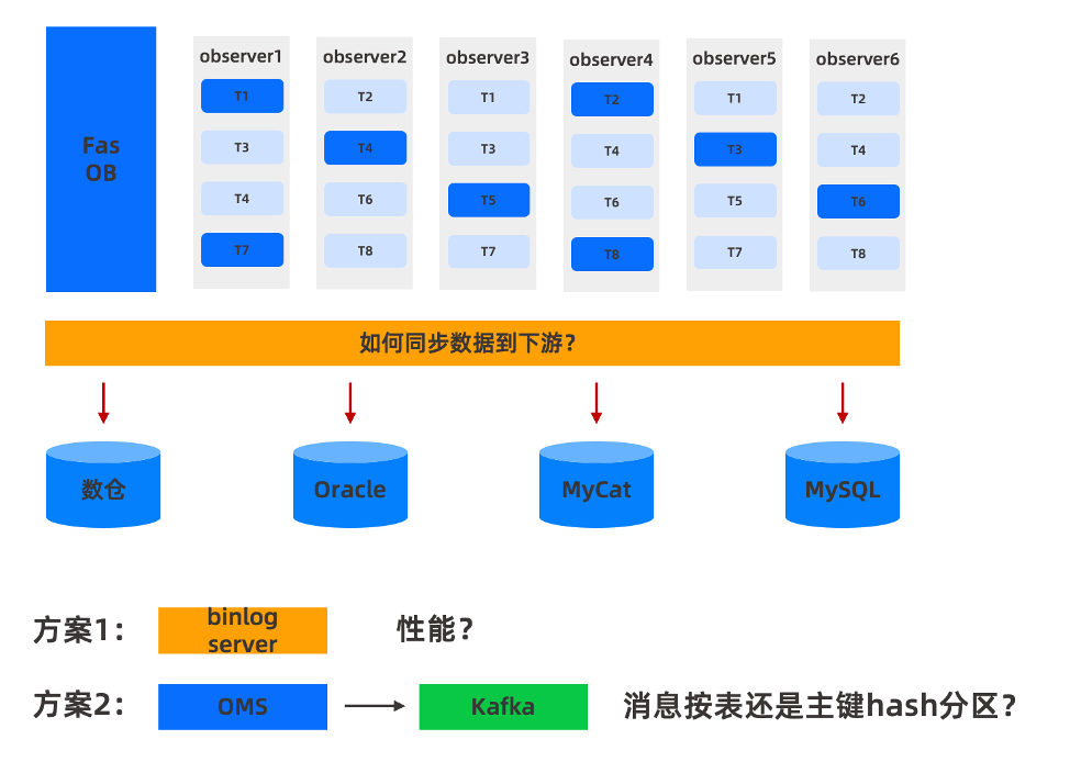图6 MyCat替换为OceanBase同步数据至下游的两种方式