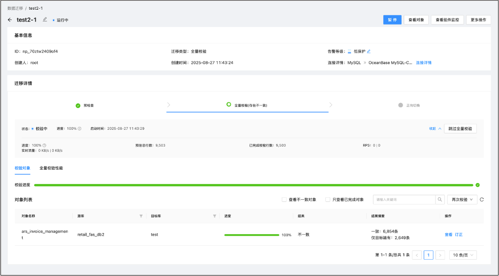 图13 将平台中 OceanBase 作为源端,Oracle 作为目标端的数据校验过程