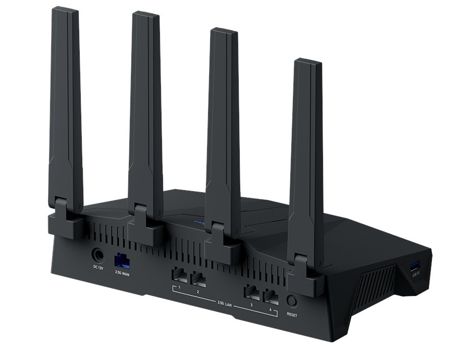 Flint 3e 无线路由器为 Wi-Fi 7 双频 BE6500 规格 (688Mbps @2.4GHz + 5764Mbps @ 5GHz),基于高通四核 IPQ5322 芯片,配备 1GB DDR4 内存、512MB 闪存,拥有 6 颗独立 FEM 芯片、4 根外置天线。