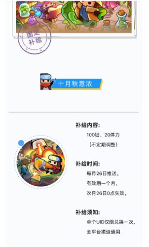 补给须知:单个UID仅限兑换一次,全平台渠道通用