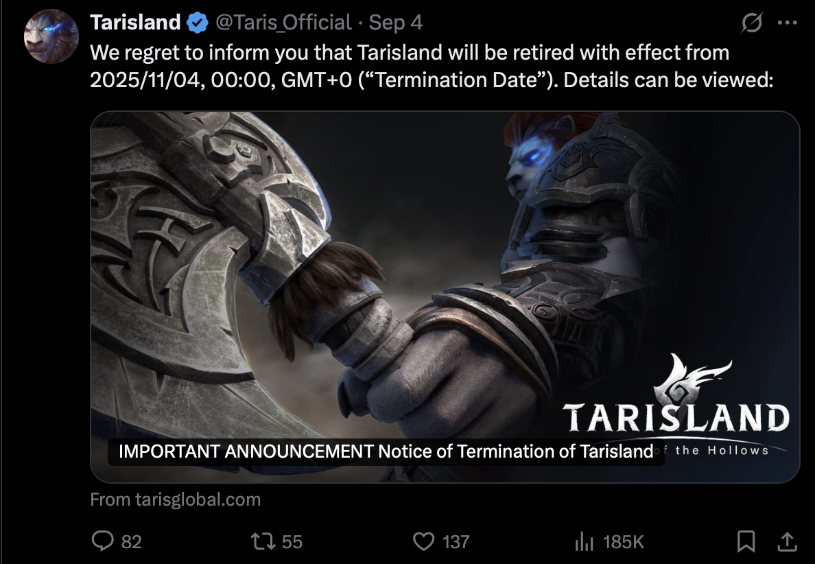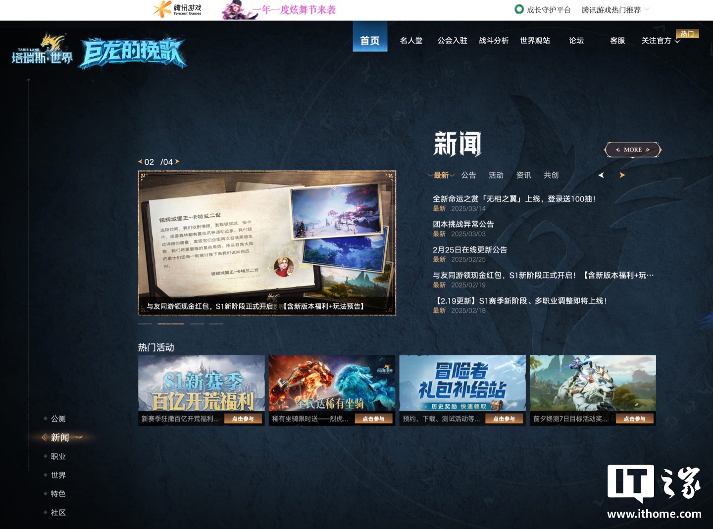 alixixi 11 月 4 日消息,据《塔瑞斯世界》X 平台官方账号,由北京乐动卓越研发、腾讯发行的双端 MMORPG 游戏《塔瑞斯世界》国际服现已正式关服。本作于 2024 年 6 月 12 日开启国服公测,紧接着 21 日开启国际服,目前已上线约 1 年半时间。