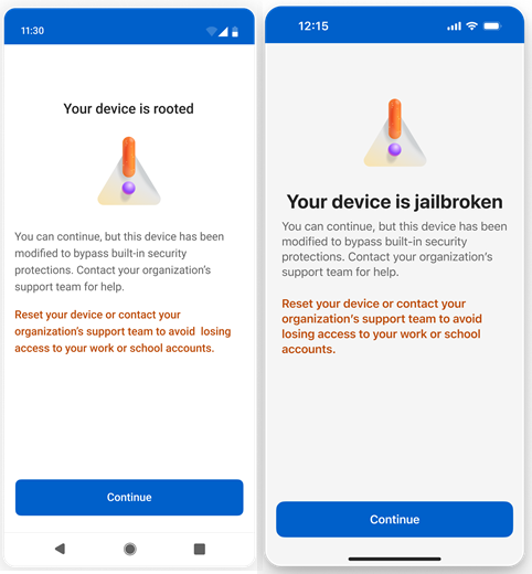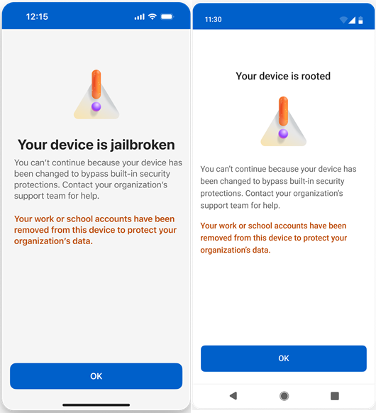 阻止:如果你继续在越狱 / Root 的设备上运行,微软将阻止你注册 Entra 凭据或通过 Authenticator 登录。