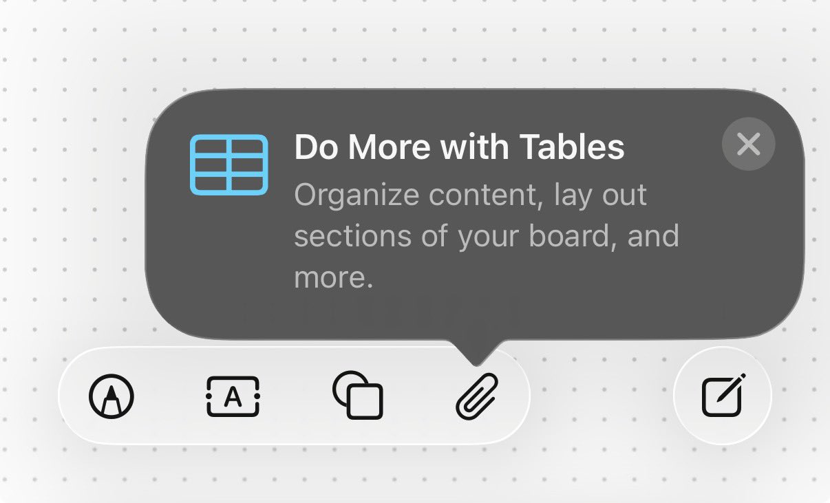 alixixi 11 月 5 日消息,科技媒体 9to5Mac 今天(11 月 5 日)发布博文,报道称在 iOS 26.2 Beta 1 更新中,苹果升级创意协作应用“无边记”(Freeform),首次原生引入了表格(Tables)功能,意味着用户今后可以在这款数字白板上更结构化地整理信息。