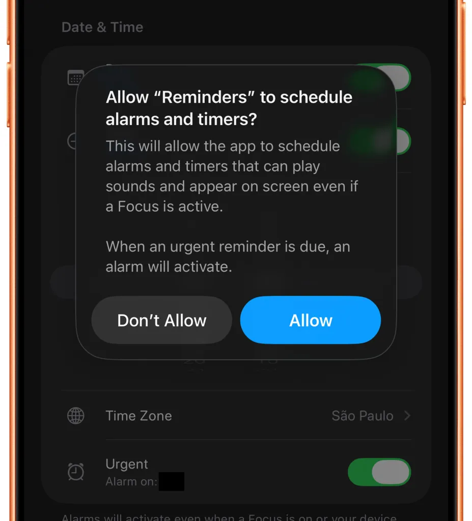 提醒事项新增“紧急”选项,可设定提醒到期时自动触发闹钟。