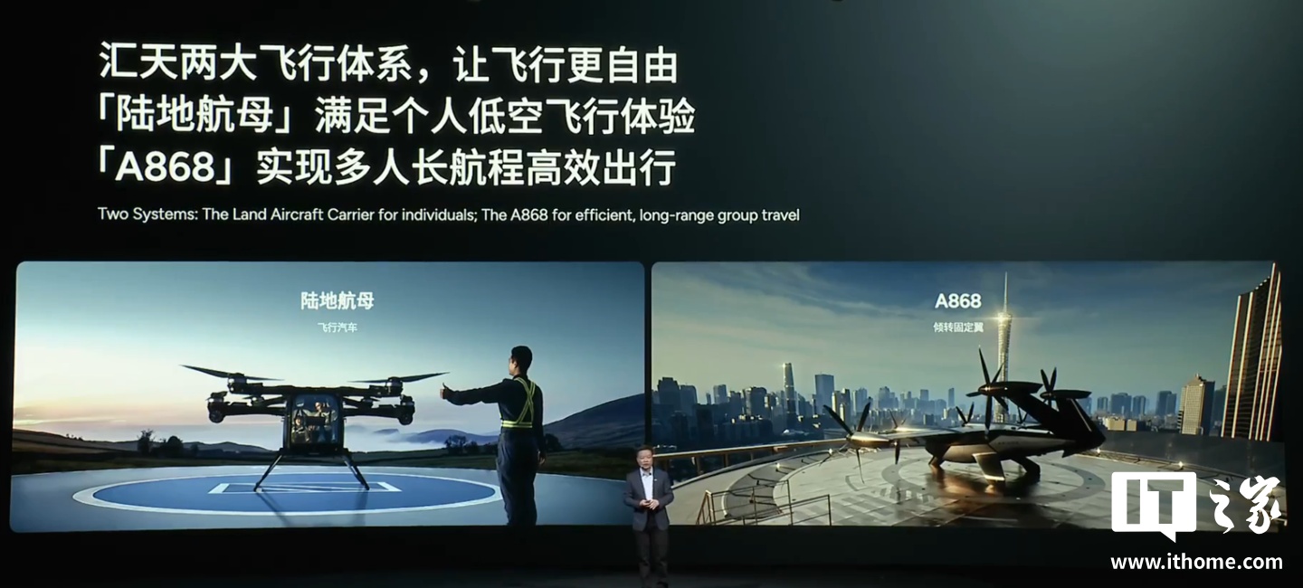 alixixi 11 月 5 日消息,在今日的 2025 小鹏科技日活动中,小鹏汇天全倾转固定翼飞行汽车 A868 正式亮相。
