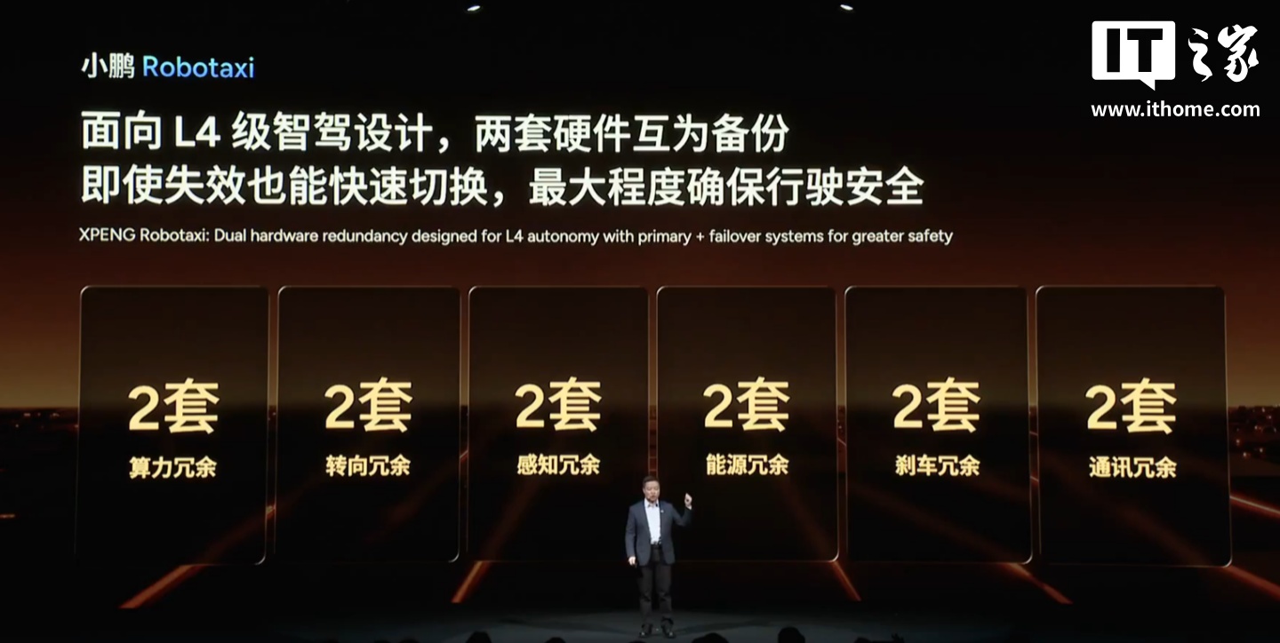 小鹏 Robotaxi 面向 L4 级智驾设计,配有两套硬件保障安全。