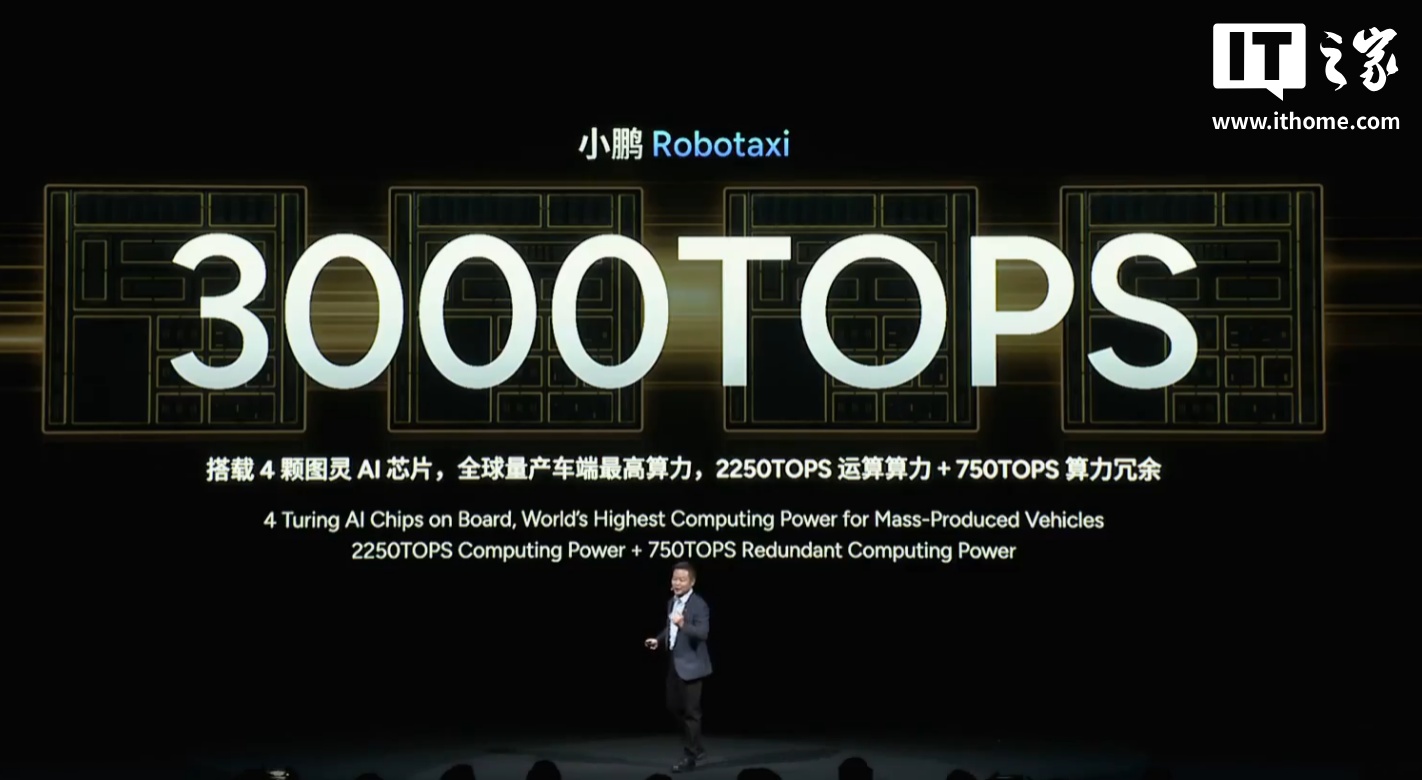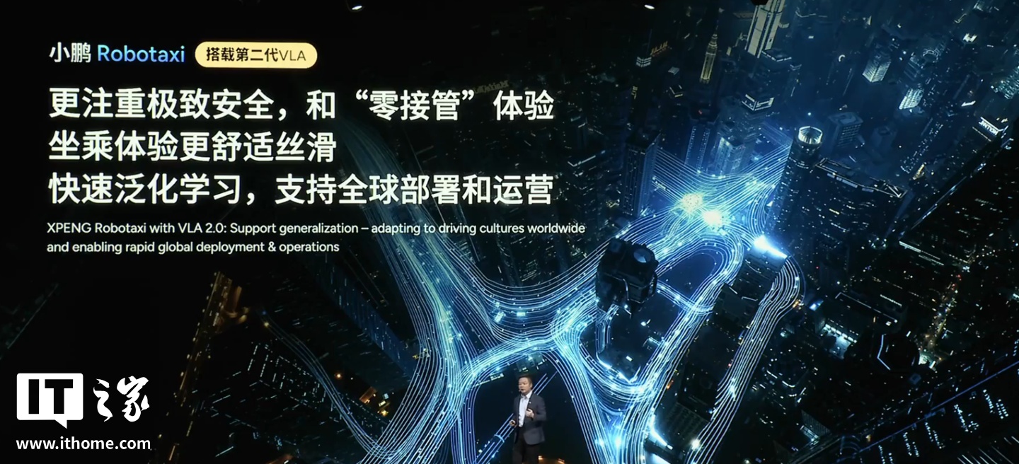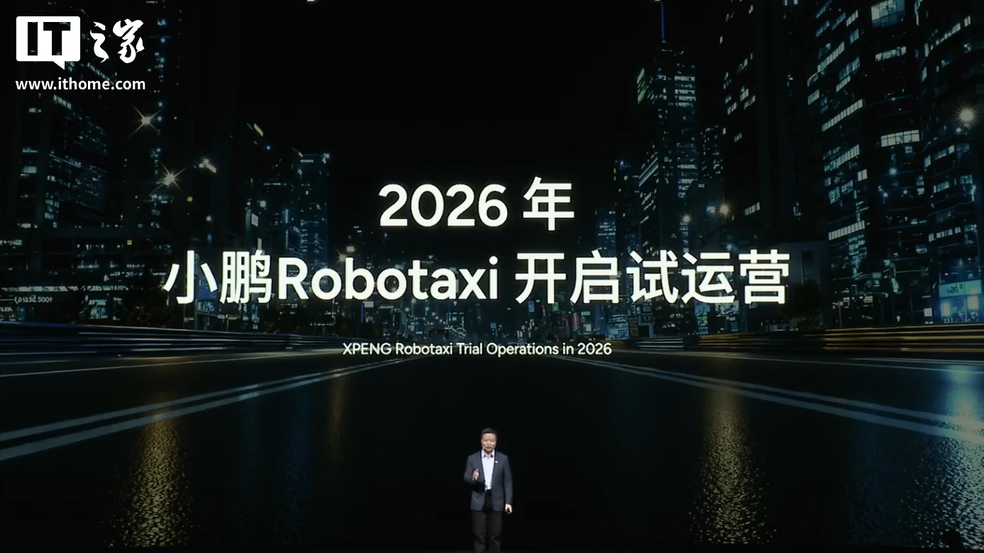 alixixi从活动直播获悉,小鹏 Robotaxi 宣称是“中国首款全栈自研量产的 Robotaxi”,将于 2026 年在广州等多个城市开启试运营。