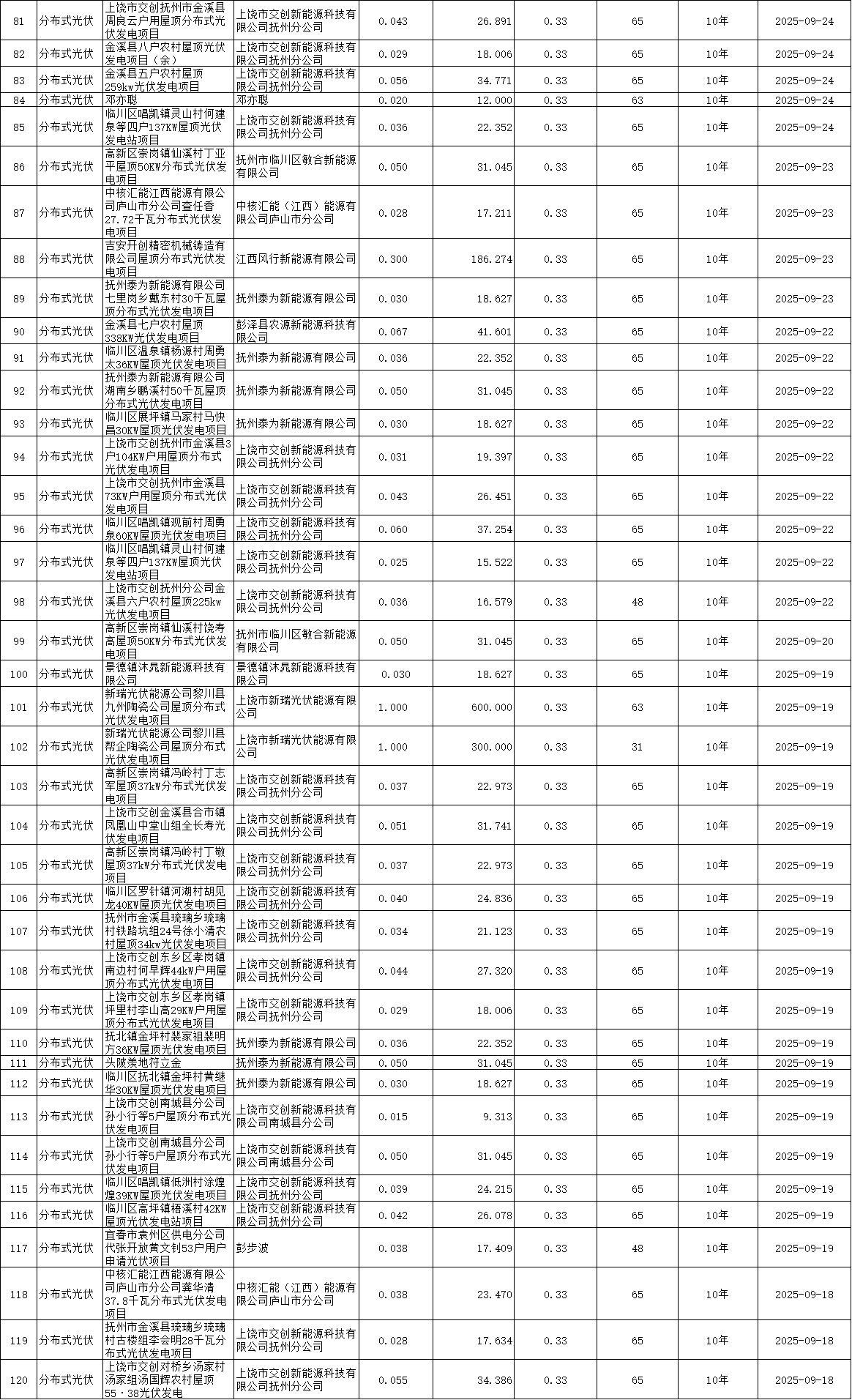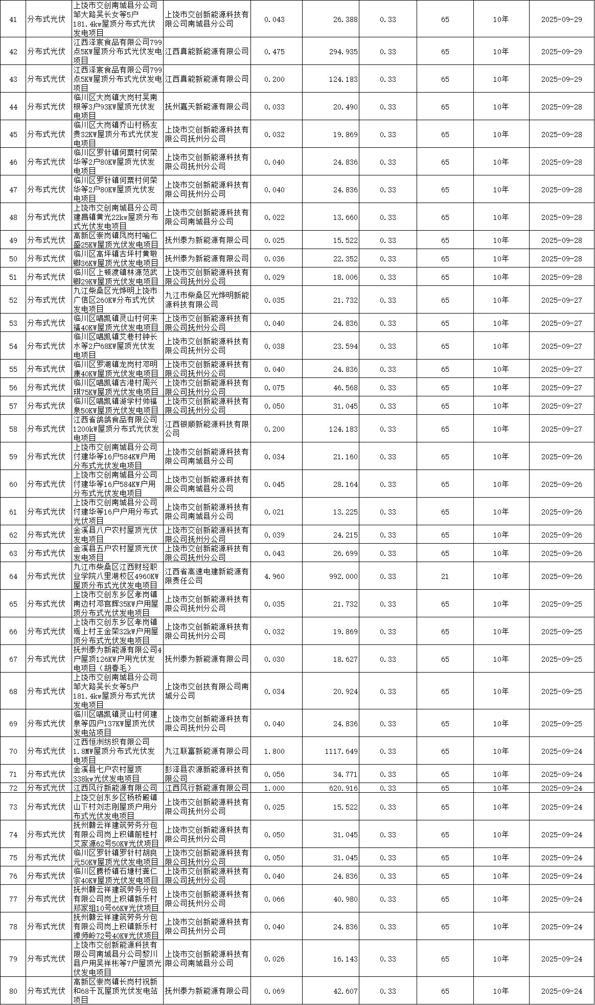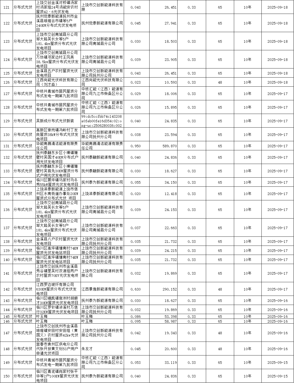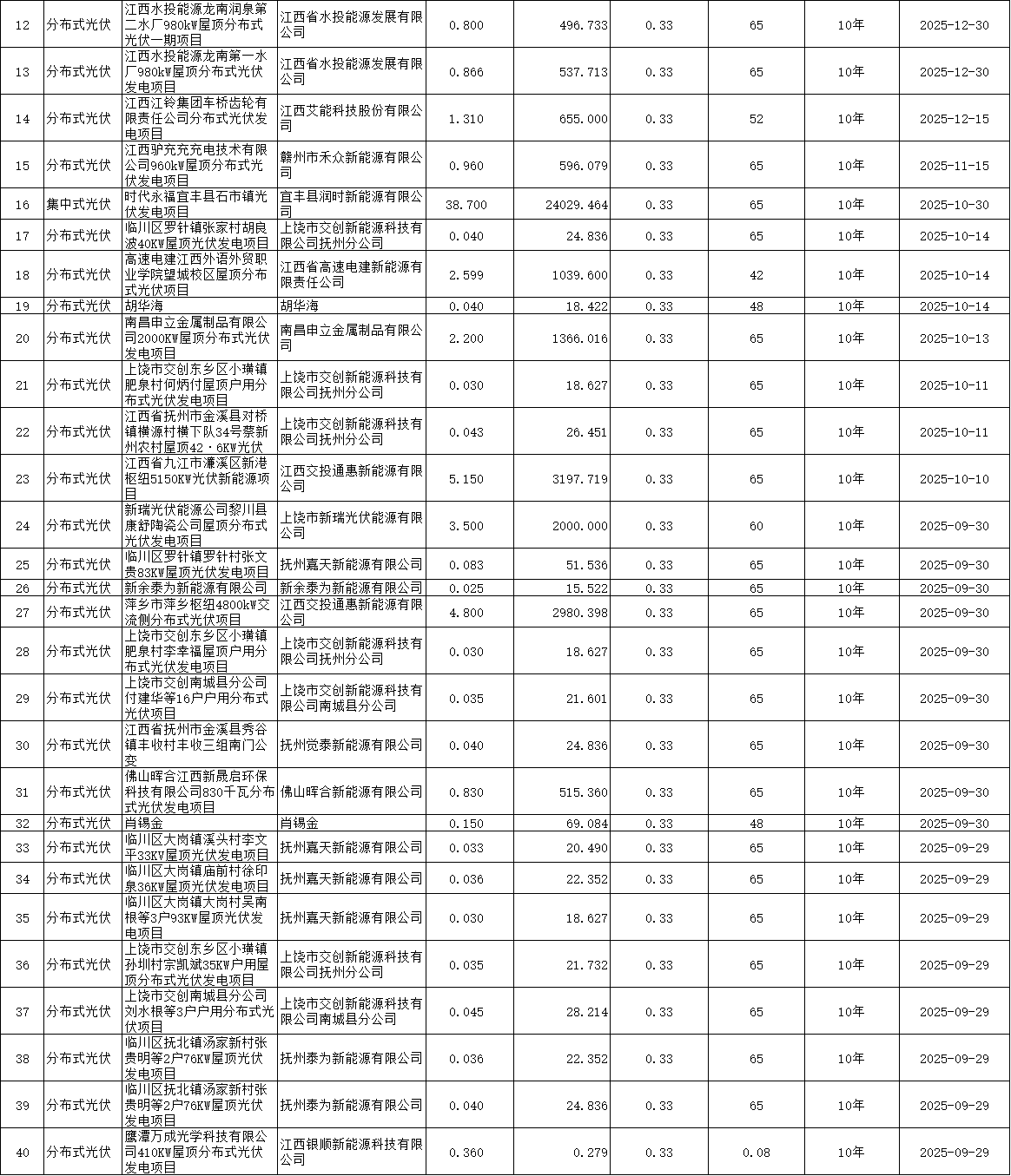 附件:江西省2025年新能源机制电价首次竞价结果