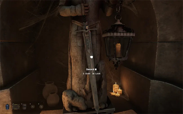剑被放在壁龛里的一个雕像手中。