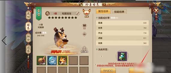 天龙八部珍兽洗练在珍兽培养界面中,玩家可以使用洗练丹对自己的宠物进行洗练。