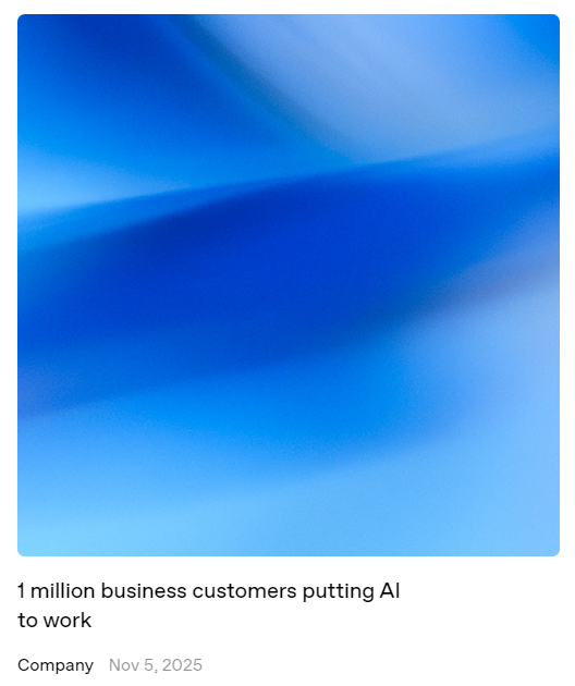 alixixi 11 月 6 日消息,OpenAI 于当地时间 11 月 5 日官宣,全球已有超过 100 万企业客户直接使用 OpenAI —— 这是历史上增长最快的企业平台。这包括所有积极为商业用途支付 OpenAI 费用的组织 —— 无论是通过 ChatGPT for Work,还是通过开发者平台直接使用 OpenAI 的模型。
