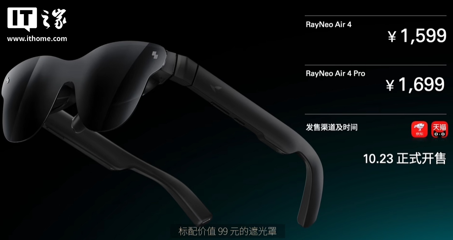 alixixi注意到,雷鸟创新 10 月 23 日晚发布新品 AR 眼镜 RayNeo Air 4,标准版 1599 元(国补价 1519.34 元),Pro 版 1699 元(国补价 1614.24 元)。