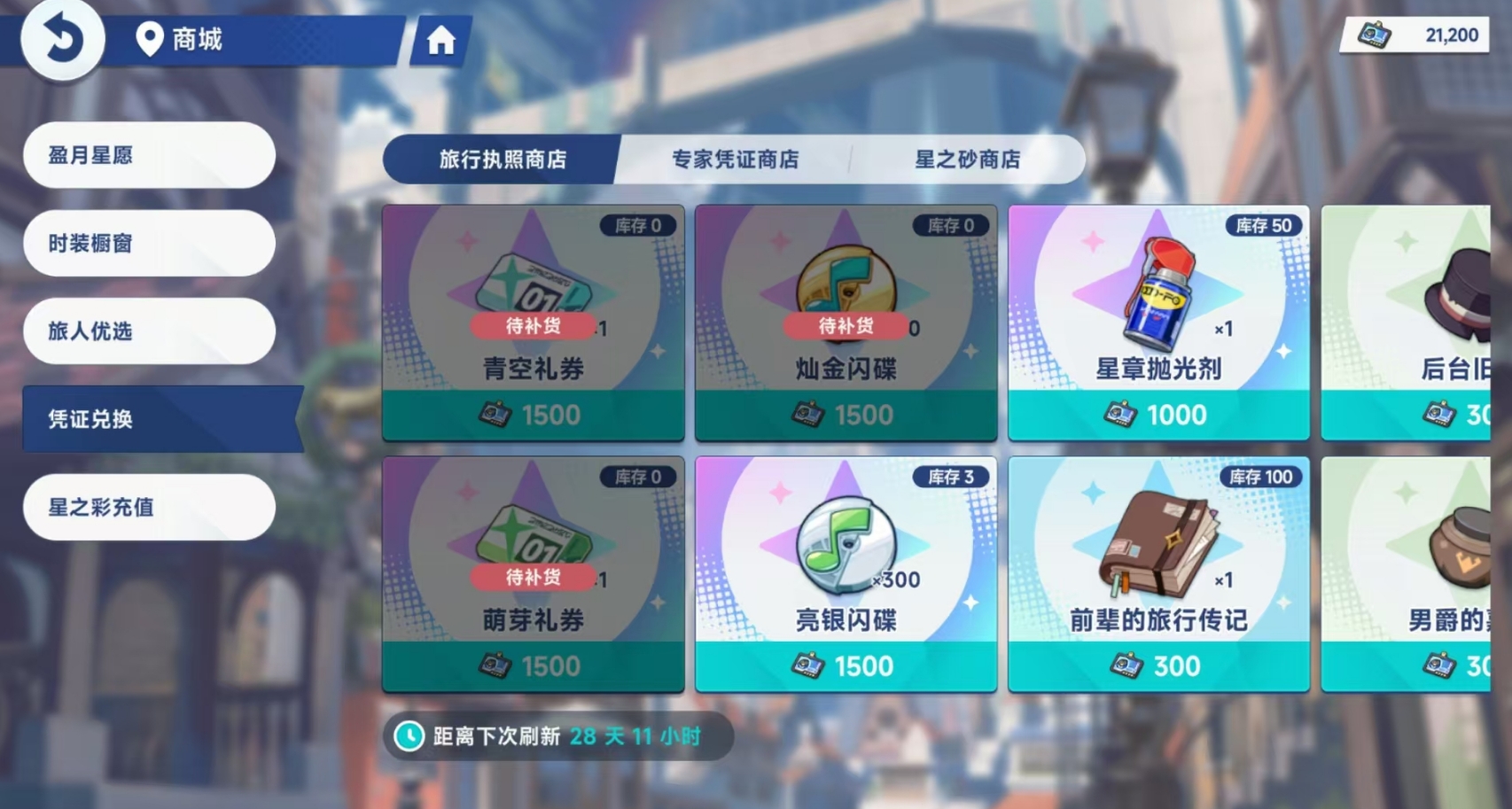 亮银闪耀的获取方式有很多种,在人们入坑后,游戏就会送上不少供人们进行抽取追忆洄游,而且许多任务也都会赠送亮银闪耀给玩家。如果送的亮银闪耀都用完了,各位还能在旅行执照商店来进行兑换,每个月都能兑换到固定数量的亮银闪耀,而专家凭证商店和星之砂商店虽然也能兑换亮银闪耀,但所用的兑换道具较为珍贵,所以不值得用来兑换亮银闪耀。此外,各位除了能通过追忆洄游来获取到常驻的虹彩秘纹外,还能通过完成各种活动来获得虹彩秘纹的自选箱,可让各位直接拿到一张常驻虹彩,各位在看到此类活动后还请尽早去完成。