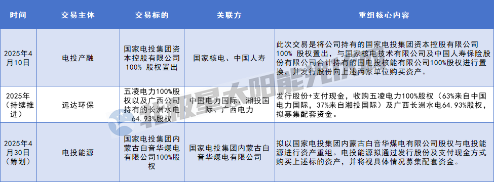 上述交易外,国家电投所属电投产融、电投能源及远达环保,相继通过股权置换、收购等形式,进行核电、水电及煤电等资产重组。