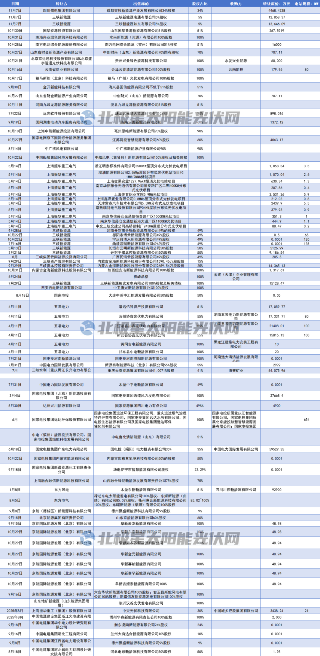 据北极星不完全统计,2025年国家电投、国家电网、中国电建、三峡新能源、南方电网、京能等央国企发起近百起新能源资产转让案例,交易金额近50亿元。