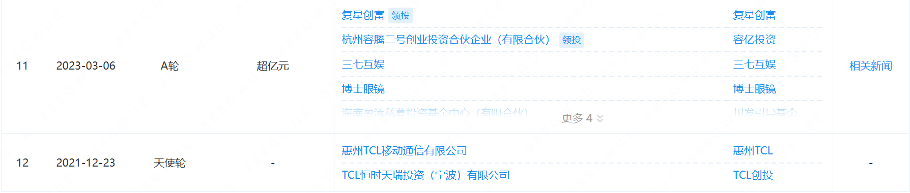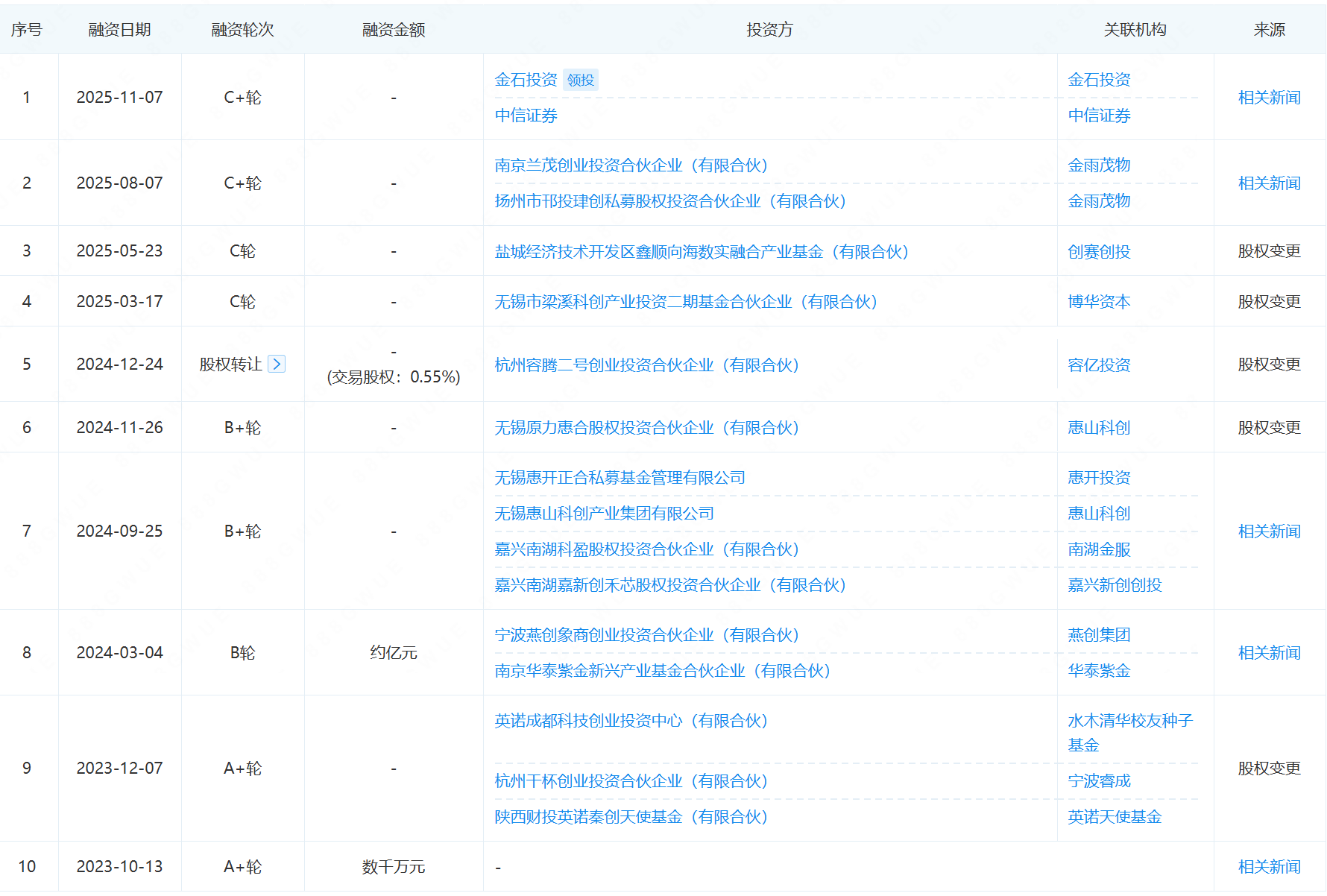 2025年8月,雷鸟创新完成C++轮融资,由金雨茂物投资。加上本轮融资,据不完全统计,从2021年至今,雷鸟创新已完成约12轮融资。