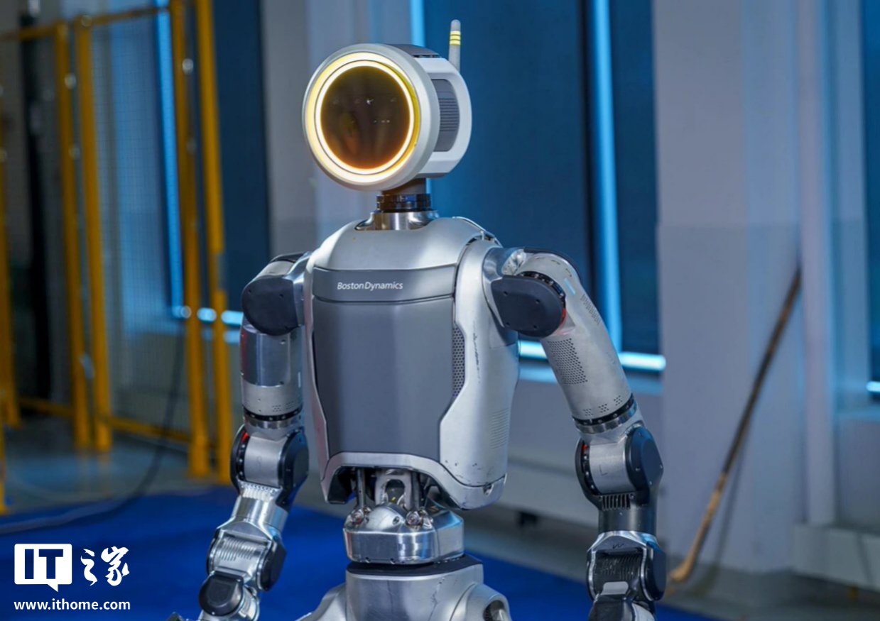 波士顿动力于 2024 年 4 月宣布液压机器人退役,转投电动机器人领域,新一代 Atlas 因此诞生。新版 Atlas 拥有更长的四肢、更直的背部,以及可以根据需要旋转的头部。机器人身上看不到任何电线,它的“脸部”还内置了环形灯。