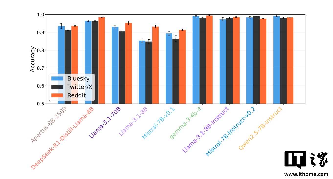 苏黎世大学、阿姆斯特丹大学、杜克大学和纽约大学的研究人员于近日联合发布报告指出,在社交媒体互动中,AI 模型因其过于友好的情感基调而极易暴露身份。
