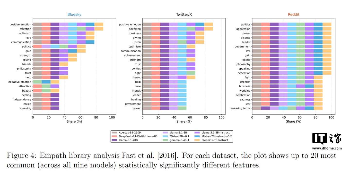 研究的核心发现被称为“毒性特征暴露”。团队测试了包括 Llama 3.1、Mistral 7B、Deepseek R1,Qwen 2.5 在内的九款主流开源大语言模型。