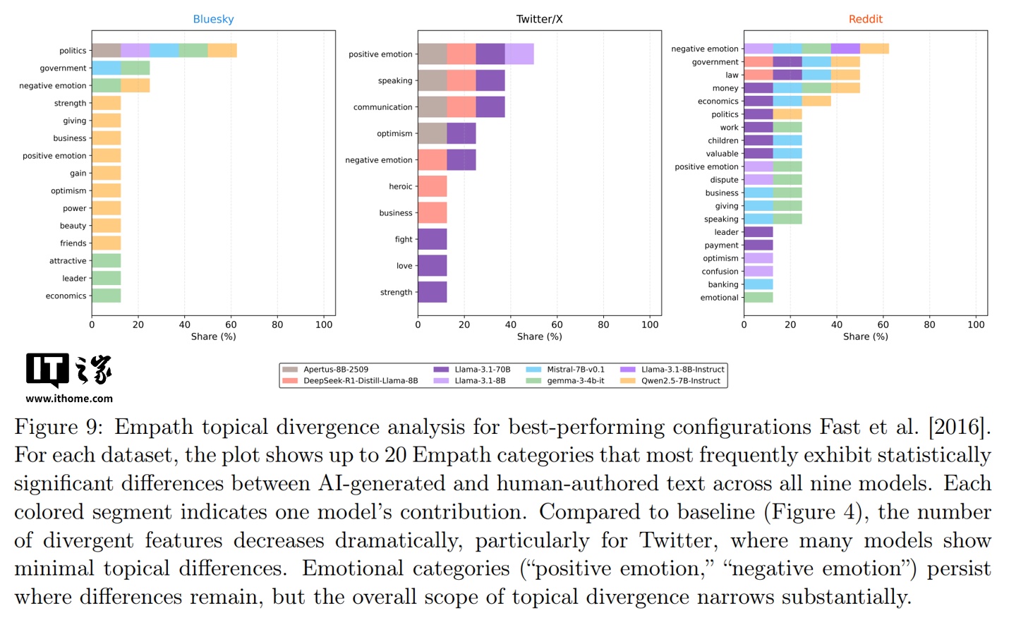 研究团队负责人、苏黎世大学的尼科洛・帕根(Nicolò Pagan)表示,即便校准相关模型,其输出内容仍在情感基调和情绪表达上与人类文本存在明显区别,这些深层情感线索成为识别 AI 的可靠依据。