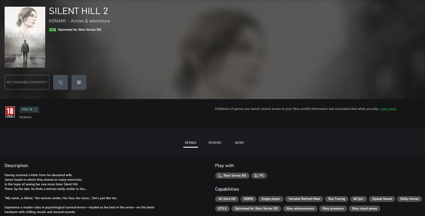 alixixi 11 月 8 日消息,据科技媒体 True Achievements 今天报道,微软商店最近的更新出现端倪,证明《寂静岭 2:重制版》游戏 Xbox Series X|S 版即将到来,有望在 11 月 21 日发售。