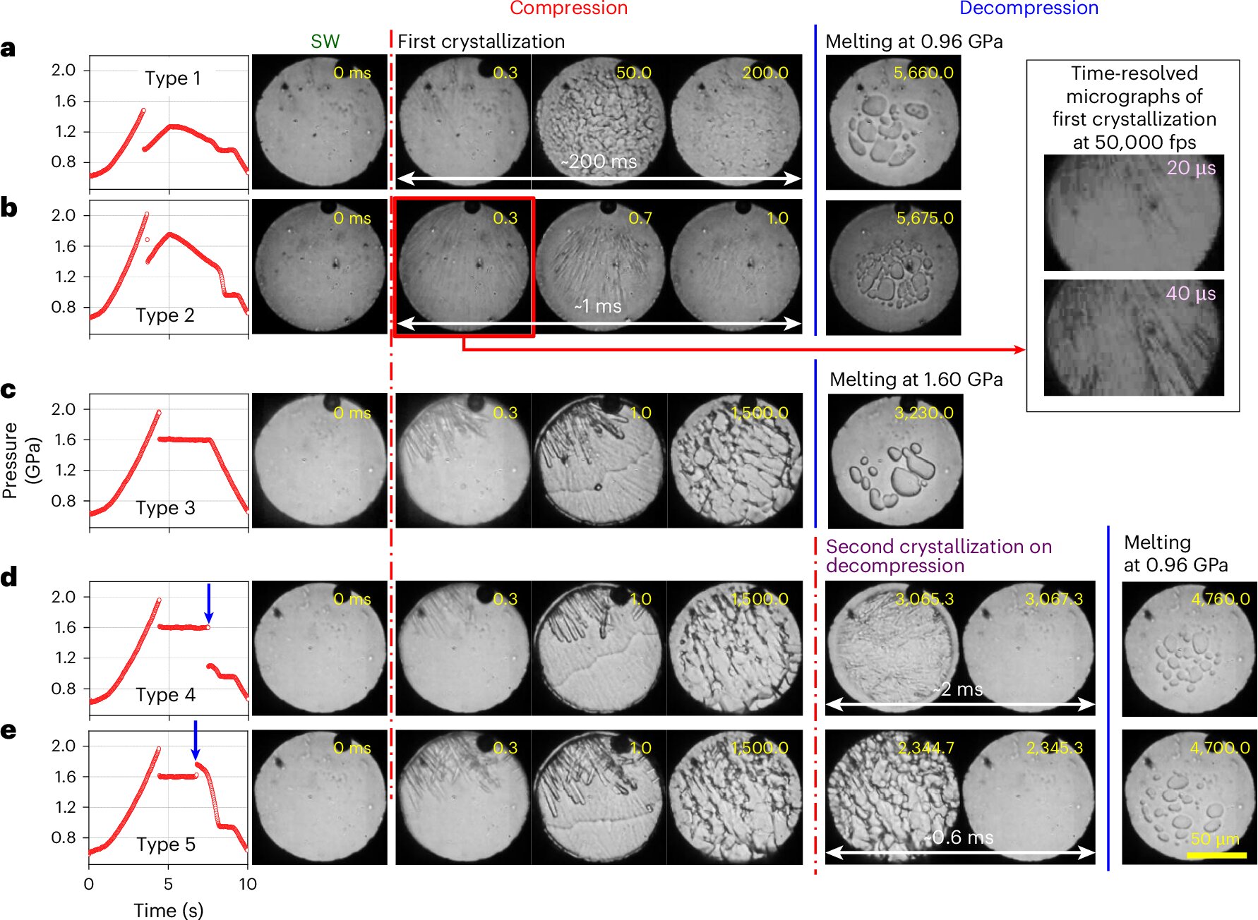 创造“冰 XXI”的关键在于一项名为“动态金刚石压砧(dDAC)”的尖端技术。与传统设备缓慢加压的方式不同,dDAC 能在短短 10 毫秒内,对水样品施加高达 2 吉帕(GPa)的巨大压力,这相当于近 2 万倍的地球表面大气压。