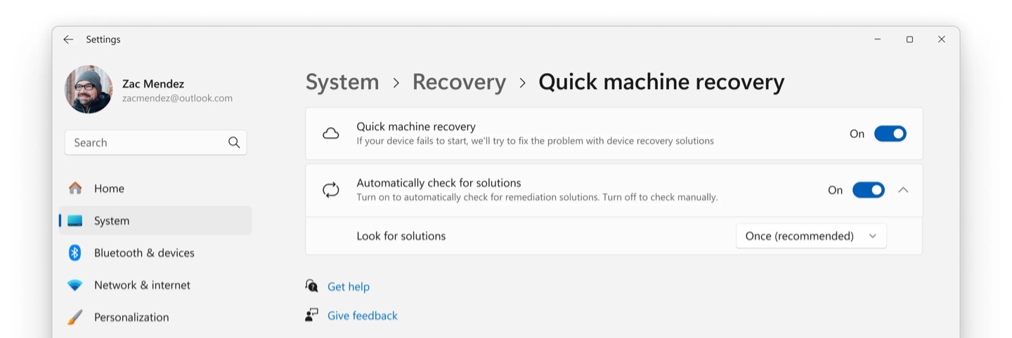 本次更新另一个值得关注的改进,在于邀请用户测试新版“快速计算机恢复”(QMR)与“智能应用控制”(SAC)。QMR 是一项远程修复工具,可以让 IT 管理员无需物理接触设备,远程解决 Windows 启动故障。